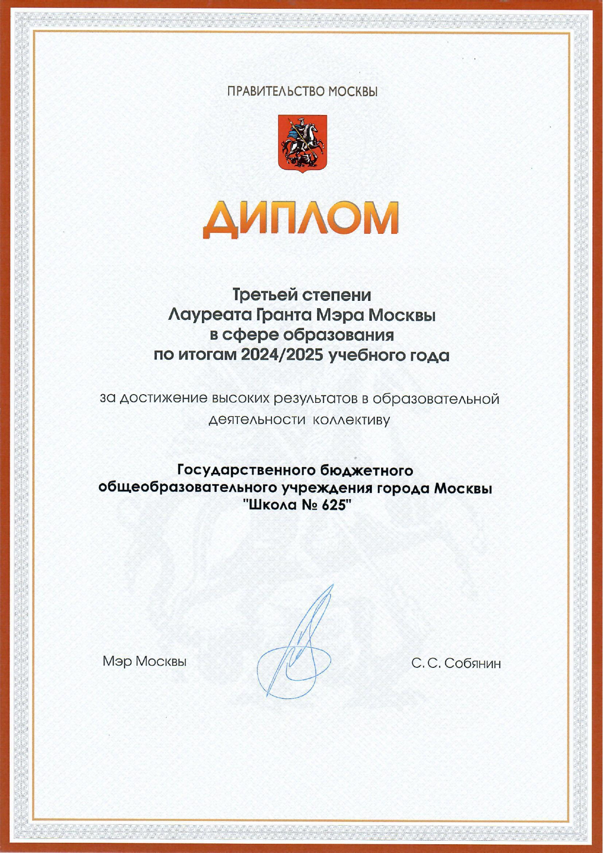 По итогам работы в 2024–2025 учебном году наша школа была удостоена Гранта мэра Москвы 3-й степени!