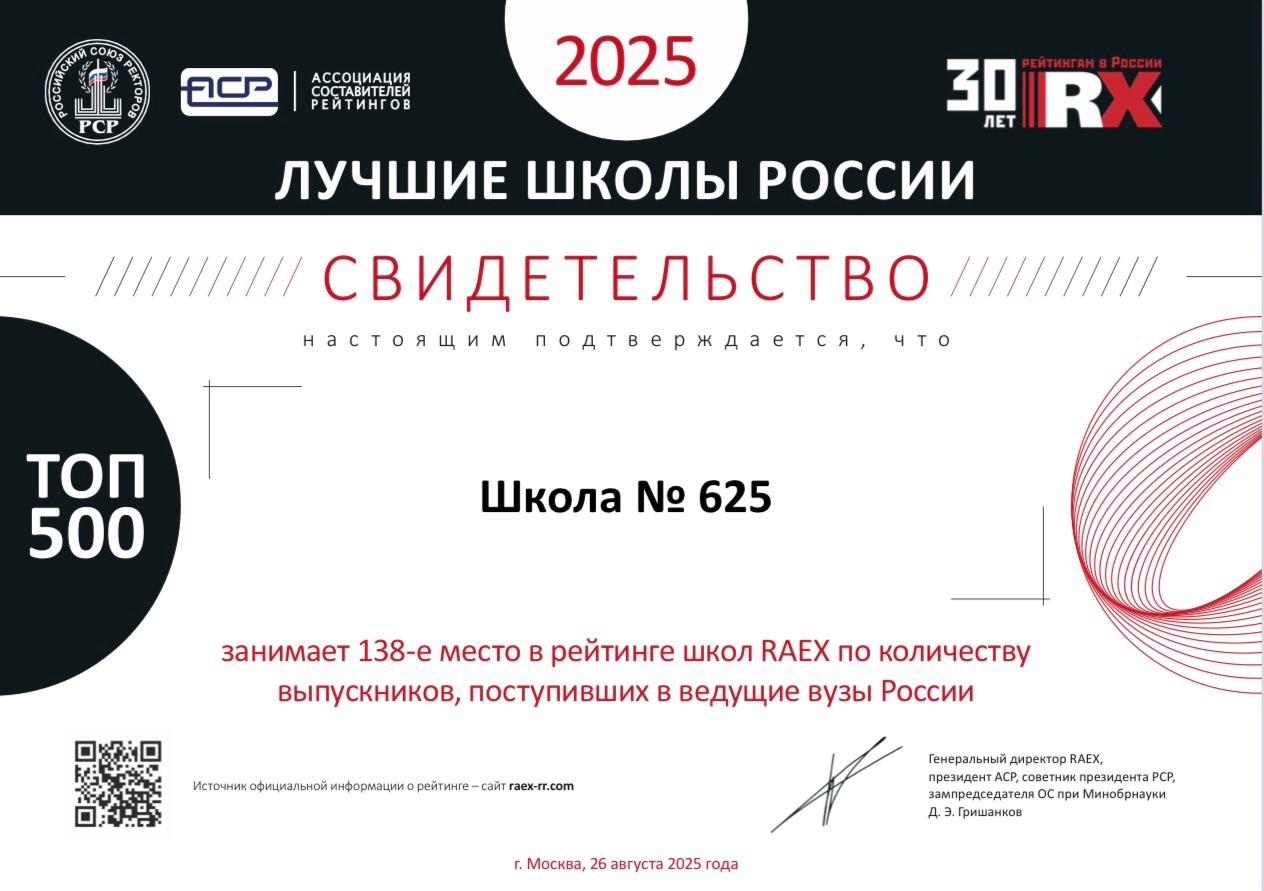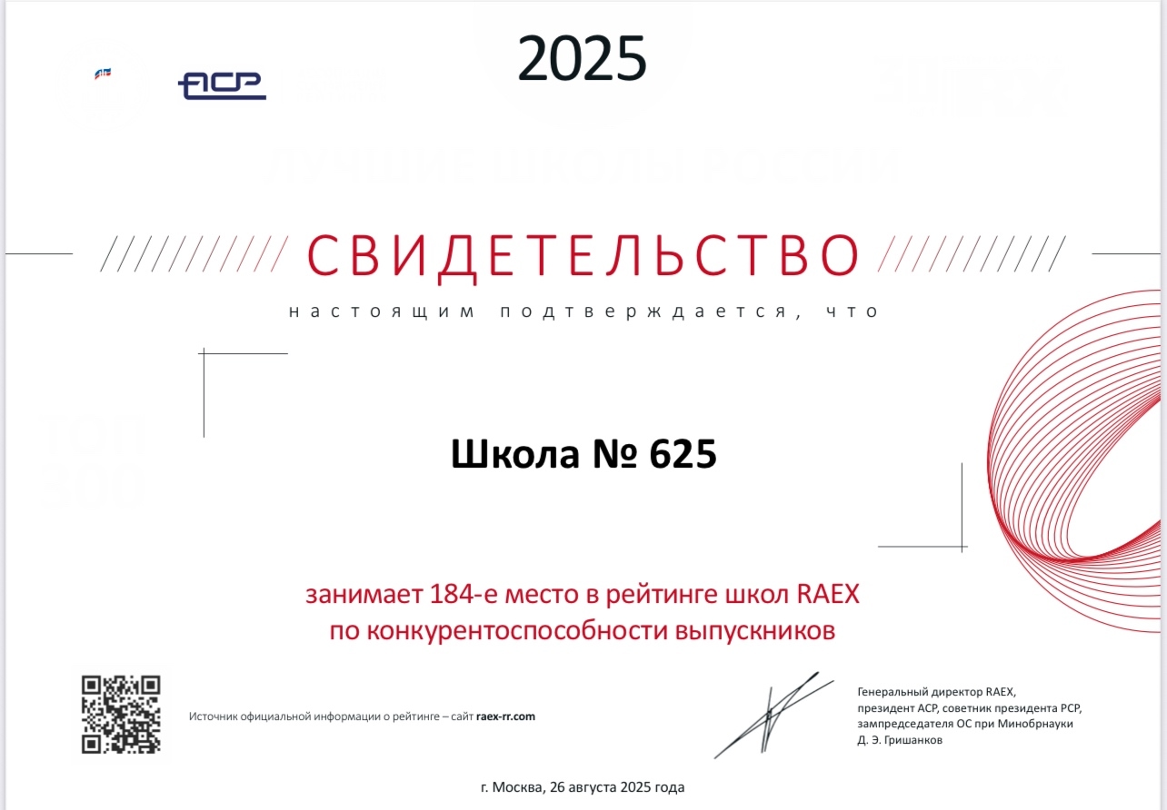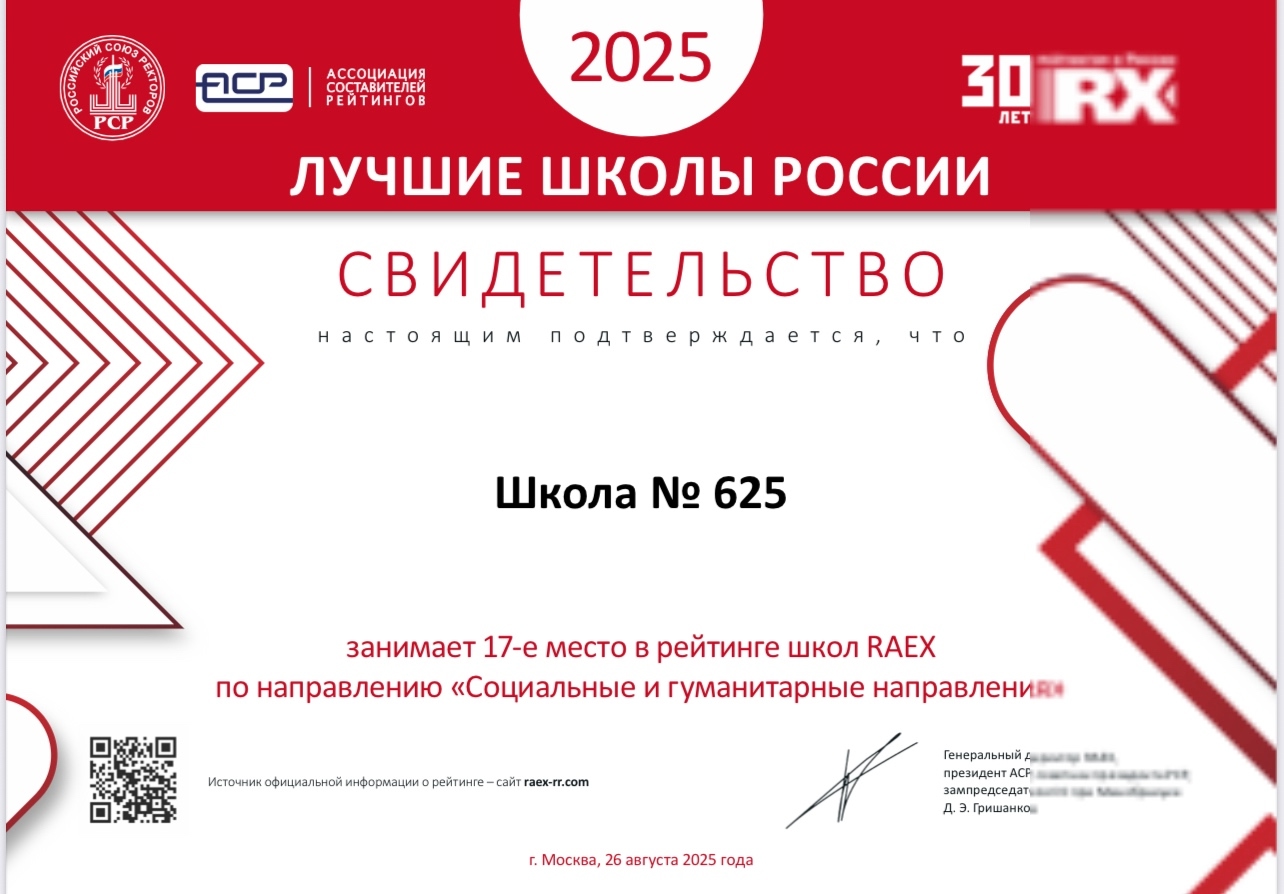 Также школа снова вошла в рейтинги лучших школ России согласно исследованию, проведенному в 2025 году рейтинговым агентством RAEX (РАЭКС-Аналитика)