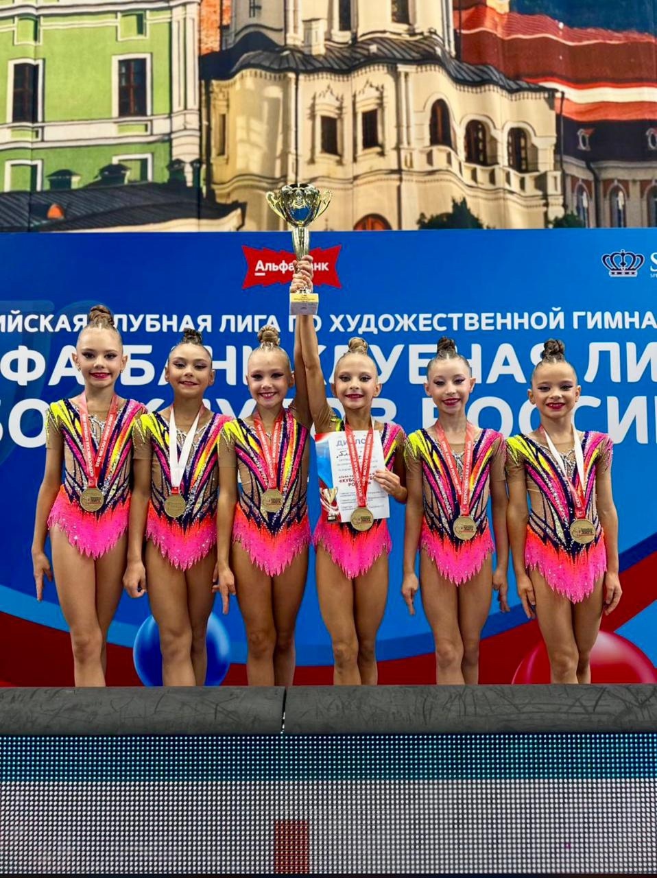 В составе команды групповых упражнений «Блеск» ЦХГ1 гимнастки одержали победу среди сильнейших команд в самом серьезном спортивном старте сезона - Всероссийской Клубной Лиге по художественной гимнастике в Казани «Альфа-Банк Кубок Клубов России 2025», куда юные спортсменки отправились как победители Кубка Клубов Москвы.